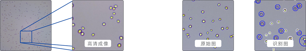 儀器配置高倍數(shù)光學(xué)放大和高清彩色相機(jī),讓細(xì)胞成像更清晰(儀器可實(shí)時(shí)預(yù)覽細(xì)胞圖像);同時(shí)智能的軟件圖像處理算法,確保高精準(zhǔn)性的細(xì)胞圖像識(shí)別(案例細(xì)胞圖為酒酵母)。