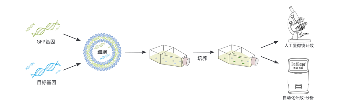 進(jìn)行轉(zhuǎn)染實(shí)驗(yàn)時(shí),在連接GFP基因與目標(biāo)基因后,通過將這些基因?qū)爰?xì)胞,研究人員可以利用GFP的熒光特性來(lái)跟蹤目標(biāo)基因在細(xì)胞內(nèi)的表達(dá)情況。這可以通過熒光顯微鏡觀察和計(jì)數(shù)綠色熒光的GFP細(xì)胞數(shù)量來(lái)實(shí)現(xiàn)。