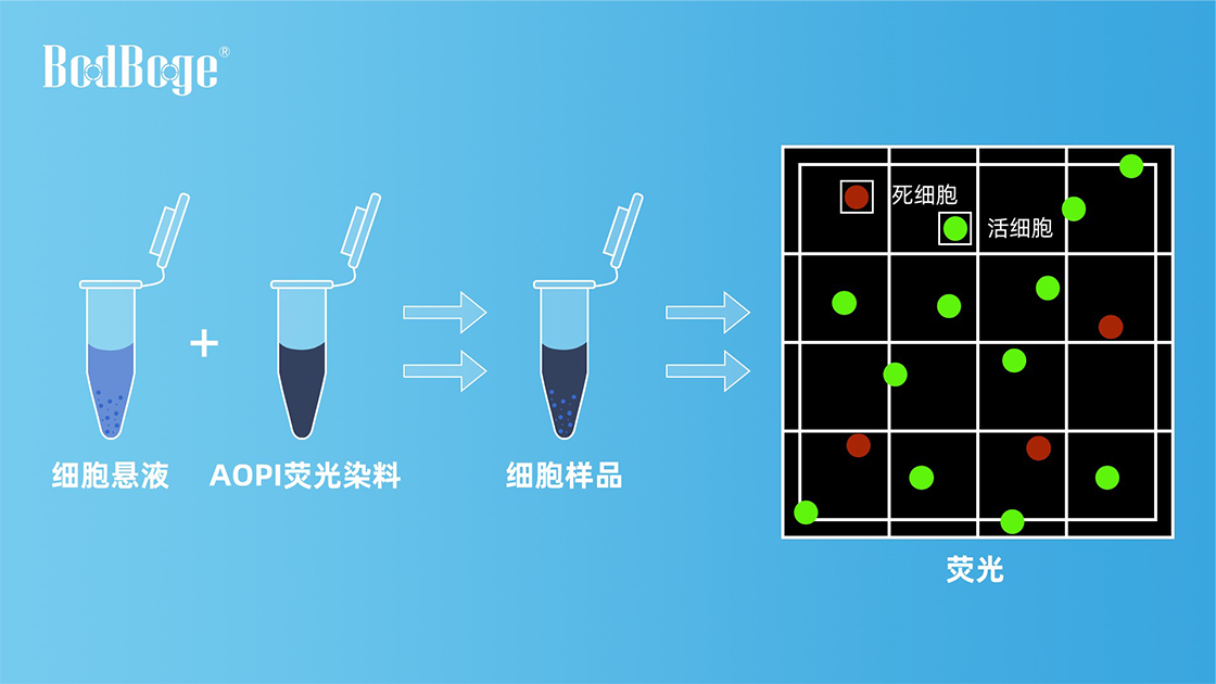 當(dāng)細(xì)胞樣品中的雜質(zhì)過多,明場下無法進(jìn)行準(zhǔn)確計(jì)數(shù)時(shí),我們可以在熒光通道下,用AOPI熒光染料對(duì)細(xì)胞進(jìn)行染色。
