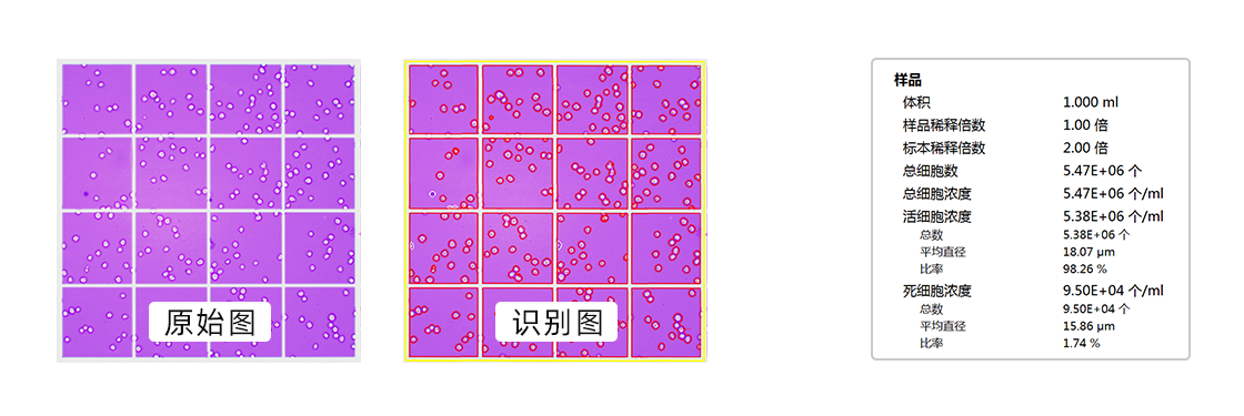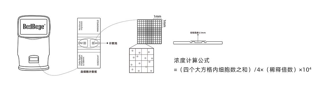 ·將加樣后的血細(xì)胞計數(shù)板放至細(xì)胞計數(shù)儀(JSY-SC-031H)的載物臺上,選擇對應(yīng)的計數(shù)模式,即可開始細(xì)胞計數(shù)分析(濃度計算公式=(四個大方格內(nèi)細(xì)胞數(shù)之和)/4×(稀釋倍數(shù))×104)。