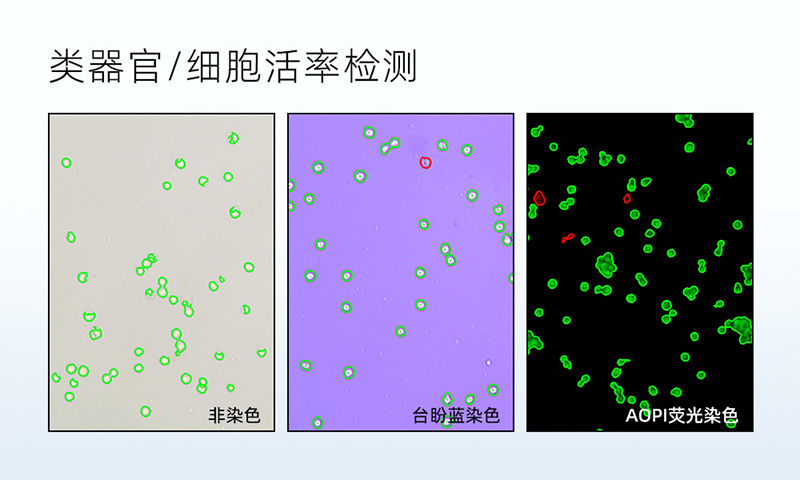 依托數(shù)據(jù)庫訓(xùn)練的AI深度識(shí)別算法,精準(zhǔn)區(qū)分活/死細(xì)胞,適用于類器官、原代細(xì)胞等復(fù)雜標(biāo)本