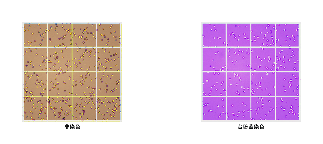 ④在兩種耗材上,博大博聚細(xì)胞計數(shù)儀都采用標(biāo)準(zhǔn)的濃度計算公式,細(xì)胞濃度=(四個大方格的細(xì)胞數(shù)之和)/4×稀釋倍數(shù)×104個Cell/mL。這使得博大博聚計數(shù)儀能夠?qū)崿F(xiàn)計數(shù)結(jié)果人工核對。